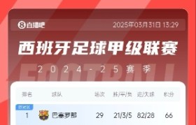 西甲:巴萨,29轮进82球 法甲:巴黎...
