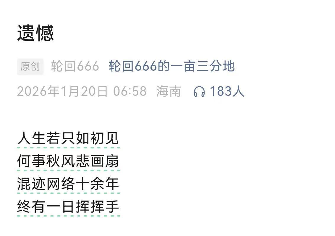 在平台用户之外,此次封禁的账号拥有人也有表态。“轮回666”拥有人在今日于公众号“轮回666的一亩三分地”发布了名为“遗憾”的文章表示,“混进网络十余年,终有一日挥挥手”。